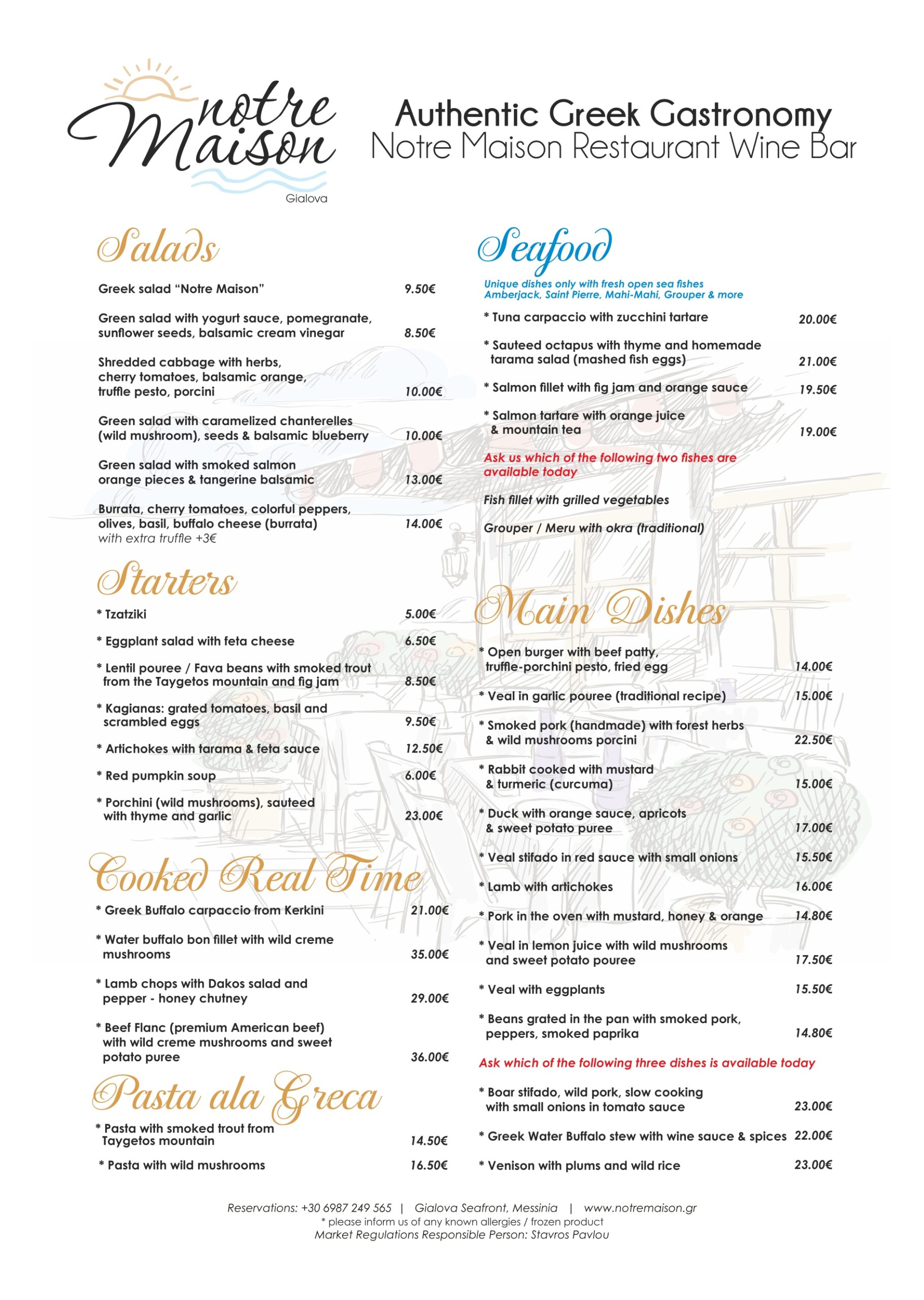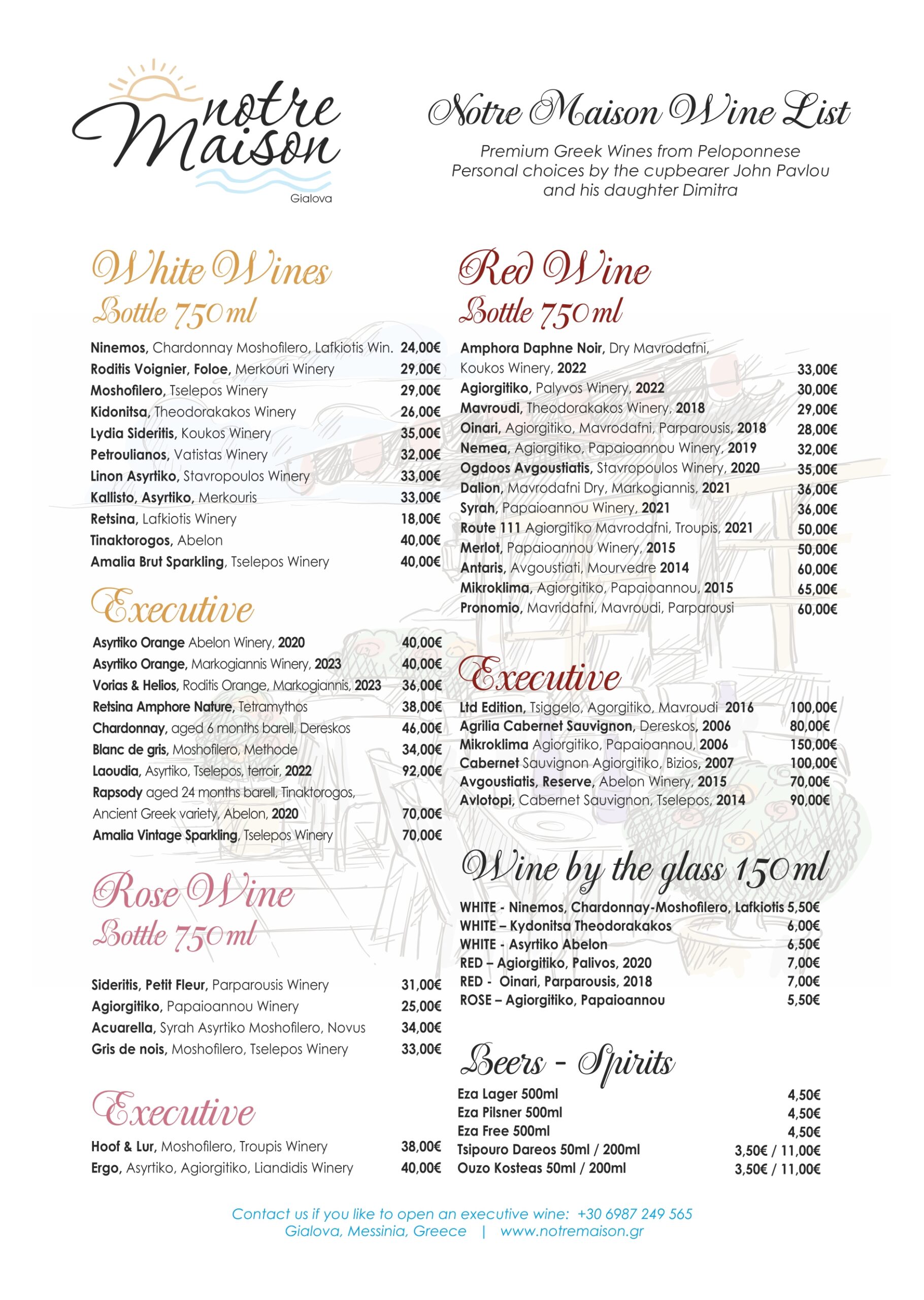 Wine & Food Pairing Red Aged Wines of Peloponnese Notre Maison Restaurant, Gialova, Messenia, Greece Sunday, 20th of February 2022 (Start time 13.00) Notre Maison restaurant organizes a wine tasting event combining food specialties with unique old red wines from Peloponnese region. We have selected 3 aged wines from the best wineries of Greece. The head person of this event...