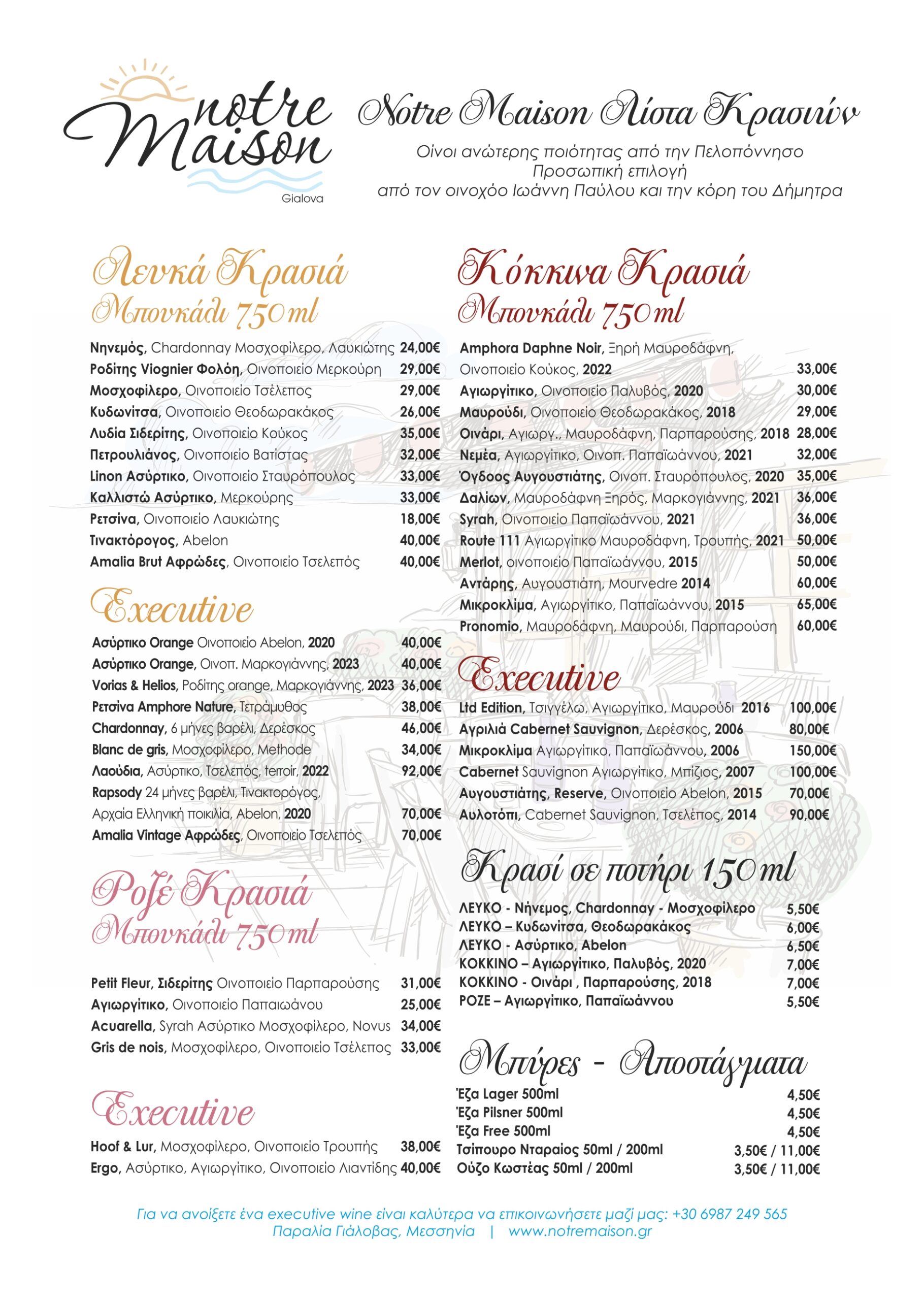 3nd Wine & Food Pairing Αφιέρωμα σε παλαιωμένα κόκκινα κρασιά της Πελοποννήσου Notre Maison, Γιάλοβα, Μεσσηνία Σάββατο βράδυ, 18 Φεβρουαρίου 2023 Η πολυστάφυλος Πελοπόννησος είναι η γη της επαγγελίας για τα κόκκινα σταφύλια, οι ποικιλίες που φιλοξενεί αναδεικνύονται ακόμη περισσότερο όταν μιλάμε για παλαιωμένα κόκκινα κρασιά Αλλά επειδή όπως λέει και ο λαός μας, ΄΄ο Φλεβάρης και αν φλεβίσει καλοκαίρι...